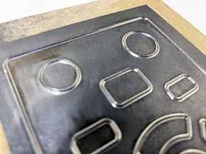 刃型の上に材料をセットし、プレスすることで形状加工を行います。